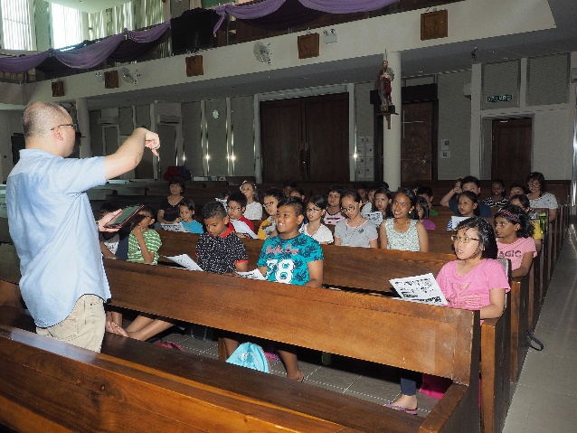 With the help of teachers, they were then asked to compose their own prayer on small cards for their loved ones and others important to them. These cards were then decorated and eventually laminated for them to offer to those they prayed for. The afternoon session began with an illustration of how sin can divide us with an activity entitled the Pocket Gospel. The older children were then given a choir workshop by Dr Filmer while the younger children were treated to station games that focused on teamwork and community spirit.